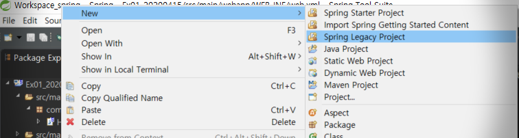 먼저 웹프로젝트 생성시 New -> Spring Legacy Project