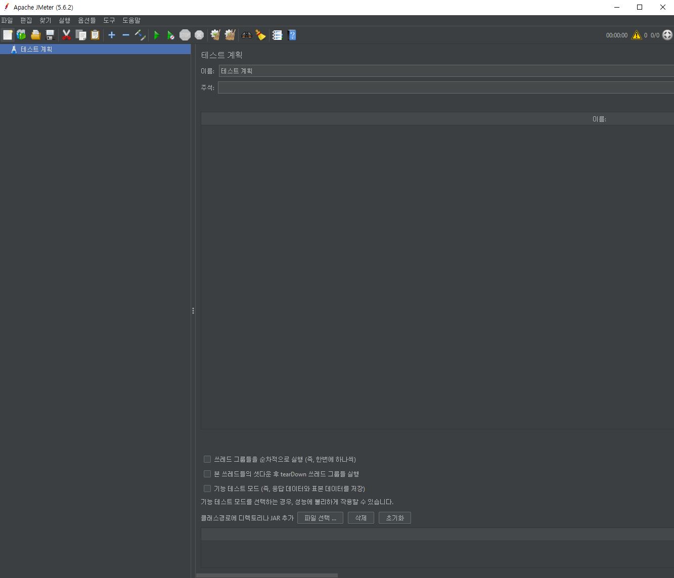 ApacheJMeter.jar 파일을 실행하면 JMeter가 실행됩니다