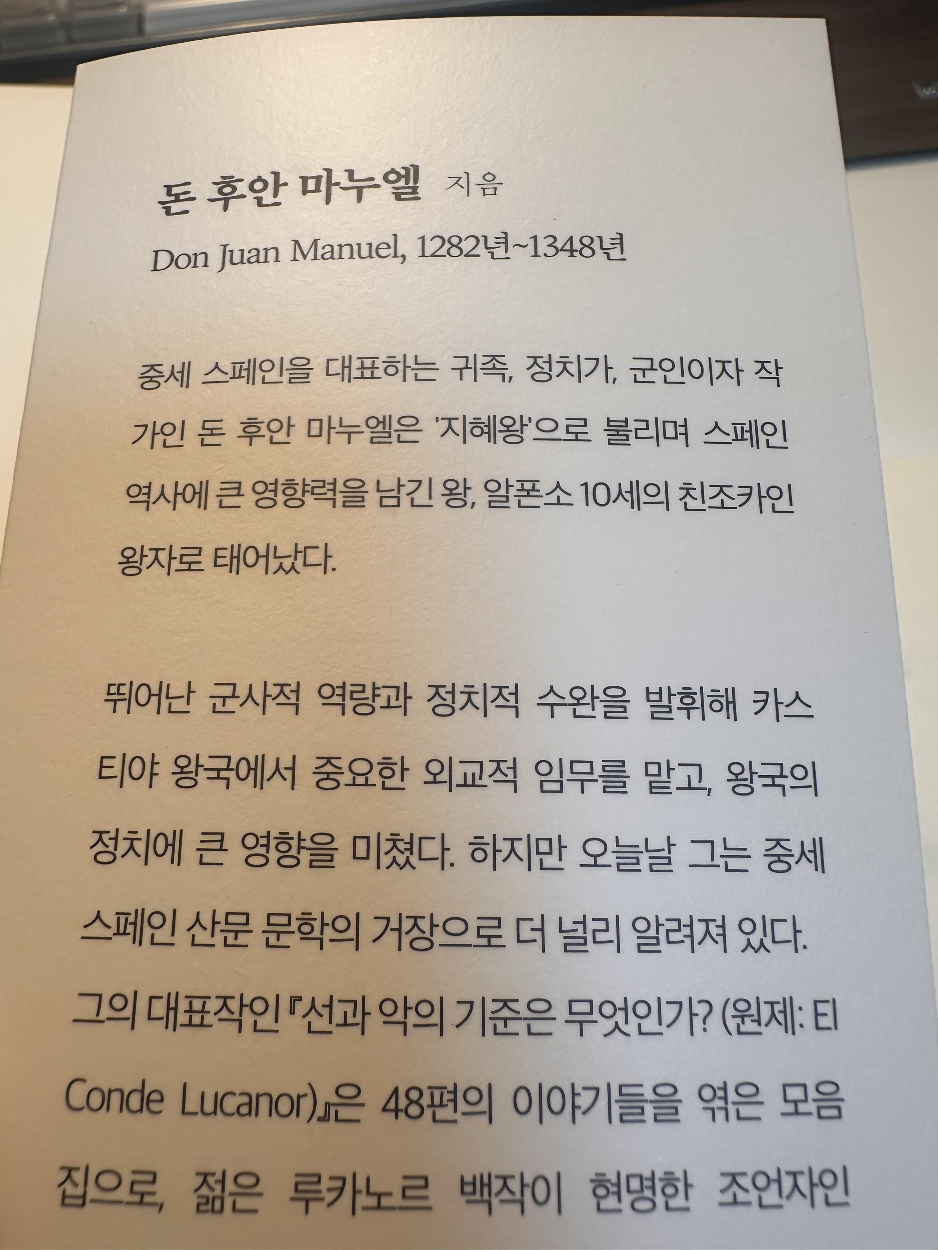 이 책은 돈 후안 마누엘의 48가지 단편으로 이루어져 있다.